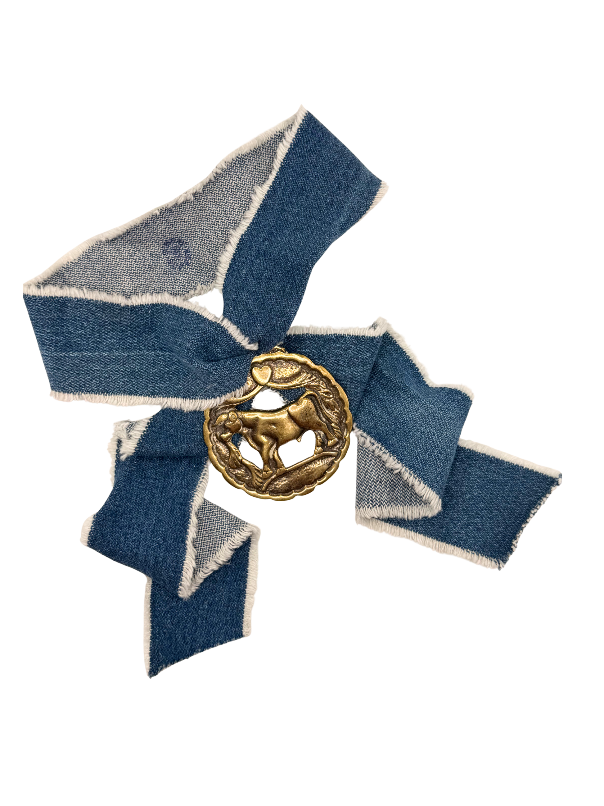 Bull in Profile Vintage Horse Brass Medallion + Denim Twilly